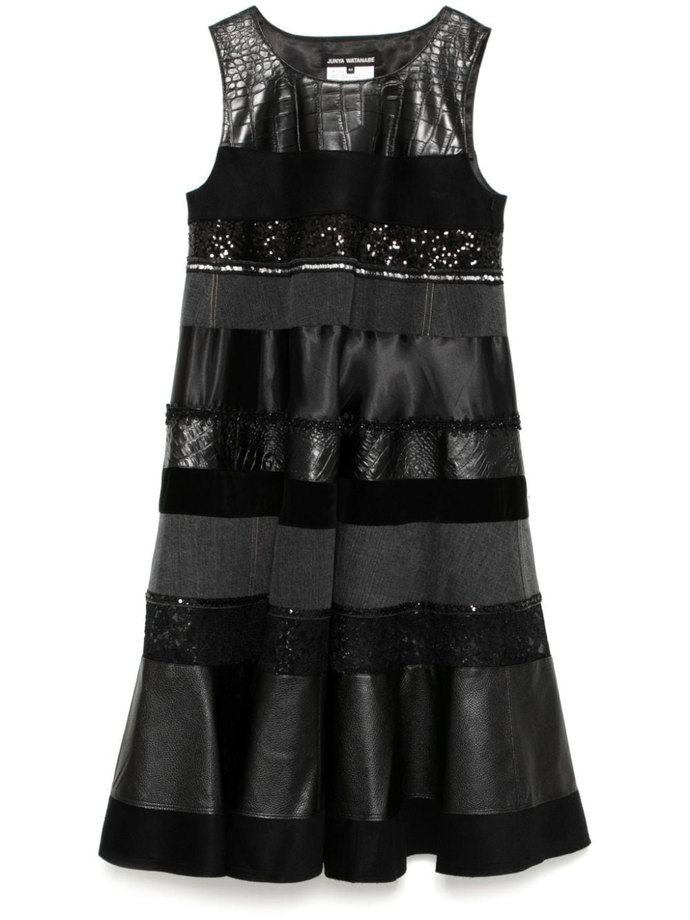 bead embellishment dress Highlights - Black - Artificial leather/cotton - Round neck - Bead embellishment - Patchwork design - Straight hem Imported Composition Cotton 100%