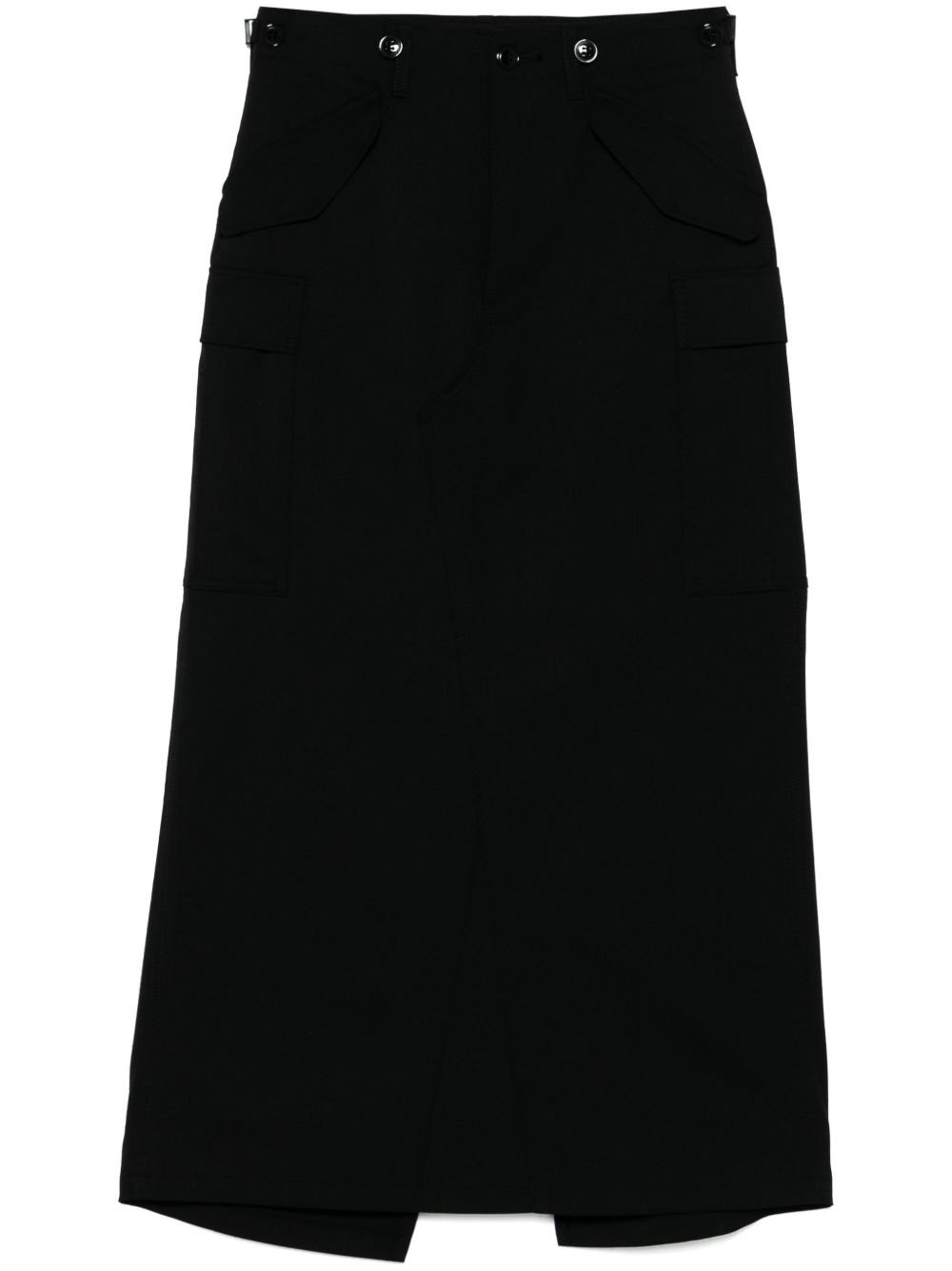 cargo midi skirt Highlights - Black - Front button and zip fastening - Belt loops - Two side flap pockets - Two rear flap pockets Imported Composition Outer: Polyester 68%, Wool 32% Lining: Cupro 100% SIZE & FIT Model measurements Height 5 ft 10 in(1.78 m) Bust/Chest 32.67 in(83 cm) Hips 35.43 in(90 cm) Waist 23.22 in(59 cm) FittingInformation This midi-length skirt is intended to be worn just below the waist The vented hem offers movement at the rear Made from a midweight non-stretch fabric