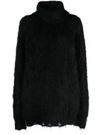 distressed brushed-effect jumper Highlights - Black - Wool blend - Brushed effect - Distressed effect - High neck - Long sleeves - Ribbed cuffs and hem - Straight hem Imported Composition Wool 75%, Nylon 25% SIZE & FIT Measurement LENGTH 29.13 in(74 cm) BUST 47.24 in(120 cm) Washing instructions Dry Clean Only