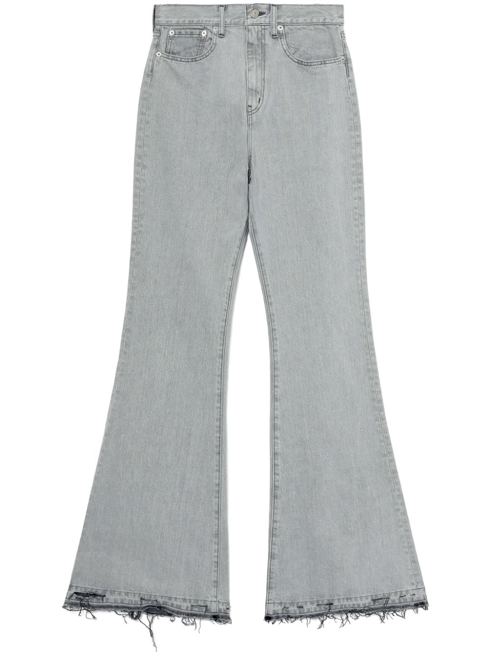 distressed flared jeans Highlights - Grey - Cotton - Denim - Front button and zip fastening - Belt loops - Classic five pockets - Logo patch to the rear - Distressed effect Imported Composition Cotton 100% SIZE & FIT FittingInformation Designed with a flared hem, these jeans allow for a close fit at the waist with a slim fit over the leg and widening towards the hem Sturdy and hard-wearing, this denim piece offers no stretch