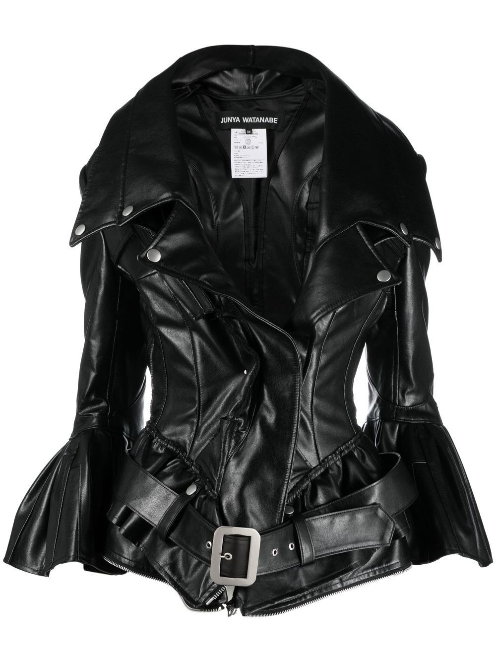 faux-leather flared fitted coat black faux leather wide notch lapels off-centre front zip fastening flared cuffs flared hem belted waist Imported Composition Outer: Polyurethane Resin 100% Lining: Polyester 100% SIZE & FIT Model measurements Height 5 ft 8 in(1.73 m) Bust/Chest 33.07 in(84 cm) Hips 35.03 in(89 cm) Waist 24.8 in(63 cm) FittingInformation This piece fits true to size. We recommend you get your regular size Designed for a close fit at the bust and waist, but loose at the hip Made with a mid-weight non-stretch fabric Washing instructions Dry Clean Only