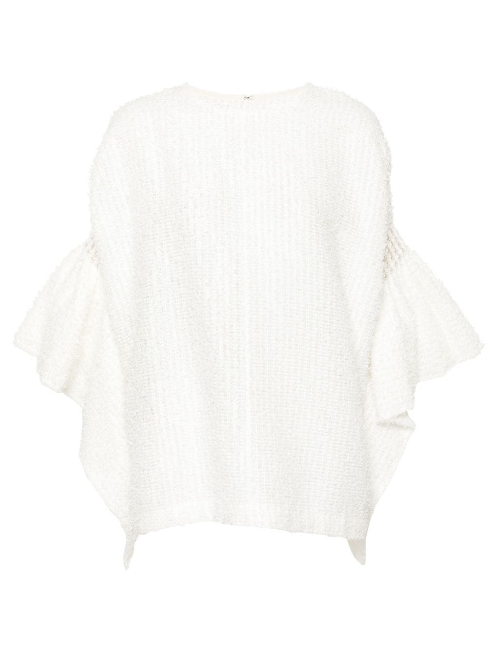 flared-cuffs boucle blouse Highlights - White - Boucle construction - Faux-pearl embellishment - Round neck - Three-quarter length sleeves - Flared cuffs - Straight hem - Rear hook fastening Imported Composition Nylon 71%, Cotton 28%, Polyurethane 1% SIZE & FIT Model measurements Height 5 ft 9 in(1.75 m) Bust/Chest 34.64 in(88 cm) Hips 36.61 in(93 cm) Waist 26.37 in(67 cm) FittingInformation Designed for an oversized fit, offering additional room throughout Made from a midweight non-stretch fabric This piece fits true to size – take your usual size