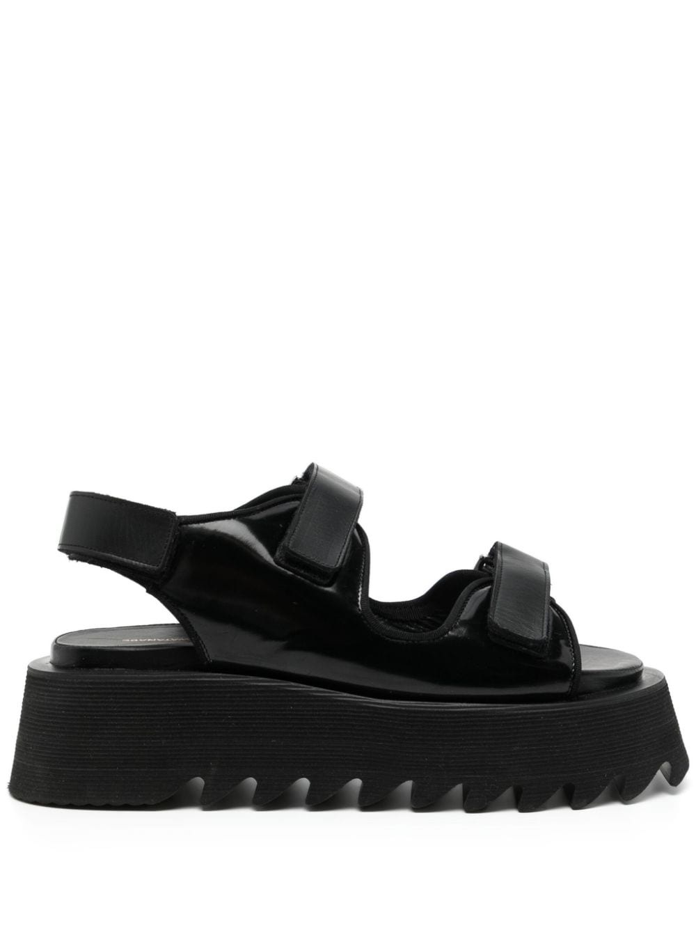lugged flatform sandals Highlights - Black - Calf leather - Patent finish - Double-strap design - Slingback strap - Touch-strap fastening - Branded leather insole - Flatform sole Imported Composition Leather 100% SIZE & FIT Measurement HEEL 2.16 in(5.5 cm) HEIGHT 1.96 in(5 cm) PLATFORM 1.77 in(4.5 cm)