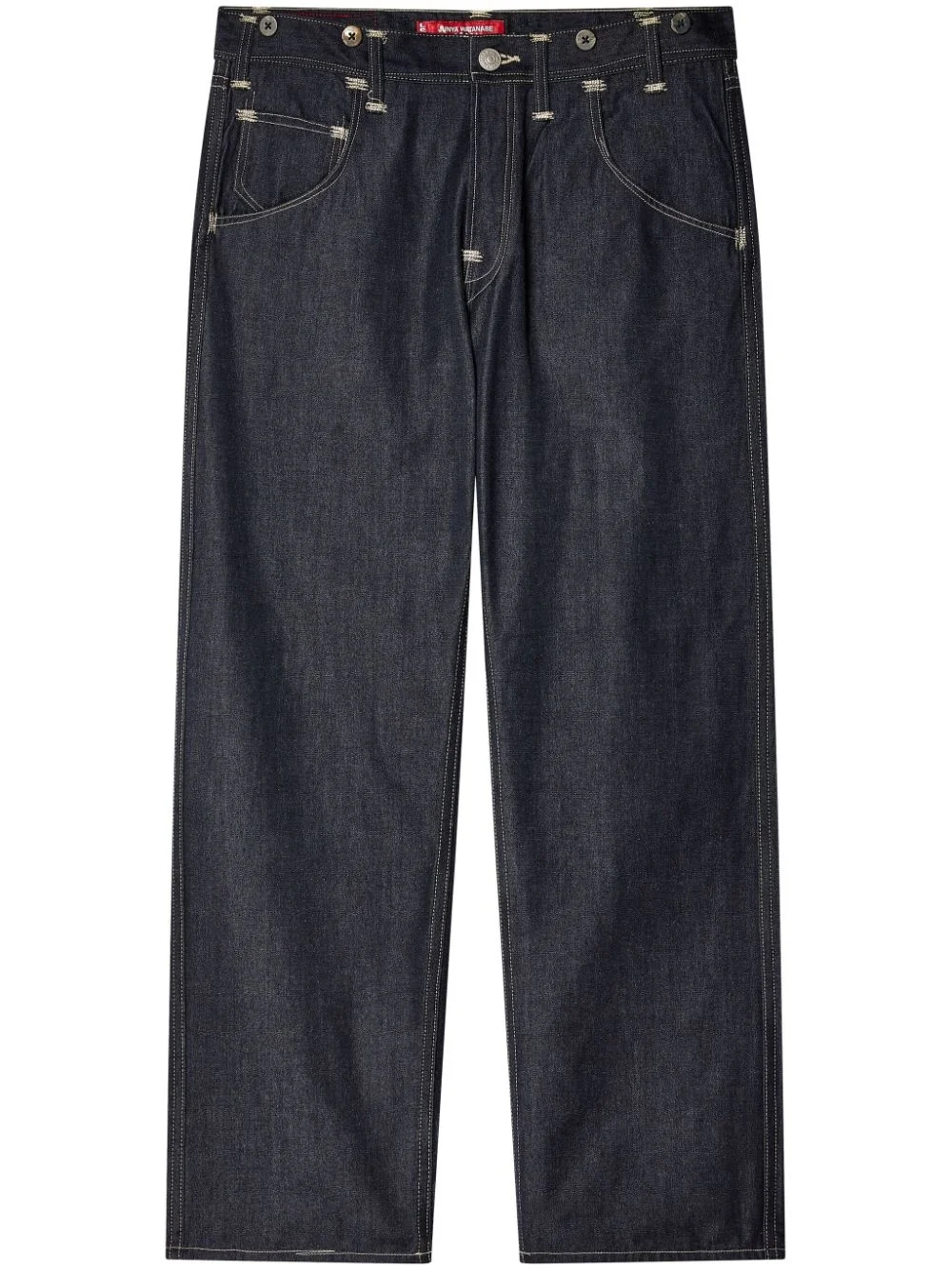 contrast-stitch jeans Highlights - Navy blue - Denim - Concealed fly and button fastening - Mid-rise - Rivet detailing - Belt loops - Contrast stitching - Classic five pockets - Applique logo - Straight leg Imported Composition Nylon 56%, Cotton 44%