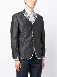 contrasting-trim buttoned blazer Highlights - Black/white - Wool-silk blend - Contrasting trim - Contrasting lapels - Notched lapels - Long sleeves - Buttoned-cuff sleeves - Front button fastening - Chest patch pocket - Two side patch pockets Imported Composition Silk 47%, Wool 43%, Nylon 10% SIZE & FIT Model measurements Height 6 ft 2 in(1.87 m) Bust/Chest 34.25 in(87 cm) Hips 36.22 in(92 cm) Waist 29.52 in(75 cm) FittingInformation Designed for a boxy fit, intended for a loose fit throughout The vented hem offers movement at the rear Made from a midweight non-stretch fabric This piece fits true to size – take your usual size Washing instructions Dry Clean Only