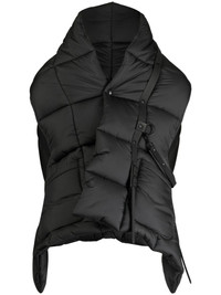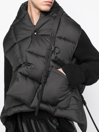 cropped padded gilet Highlights - Black - Padded design - Two front patch pockets - Front button fastening - Decorative buckle detailing - V-neck - Sleeveless - Cropped - Straight hem Imported Composition Polyester 100% SIZE & FIT Model measurements Height 6 ft 2 in(1.89 m) Bust/Chest 37.4 in(95 cm) Hips 36.61 in(93 cm) Waist 28.34 in(72 cm) FittingInformation Designed to be unstructured, offering a loose fit throughout Made from a padded non-stretch fabric, giving it no natural elasticity This piece fits true to size – take your usual size Washing instructions Dry Clean Only