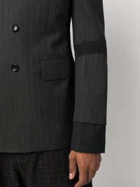double-breasted wool blazer In a timeless tailored design, this blazer from Junya Watanabe MAN is constructed to a double-breasted silhouette. Made from wool for an elegant look. Highlights - Ash grey - Wool - Peak lapels - Front button fastening - Long sleeves - Chest welt pocket - Two front flap pockets Imported Composition Outer: Wool 100% Lining: Cupro 100% SIZE & FIT Model measurements Height 6 ft 2 in(1.88 m) Bust/Chest 36.61 in(93 cm) Hips 37.79 in(96 cm) Waist 28.74 in(73 cm) FittingInformation Designed for a slim fit, offering a comfortable fit that sits just away from the body The vented hem offers movement at the rear Made from a midweight non-stretch fabric This piece fits true to size – take your usual size