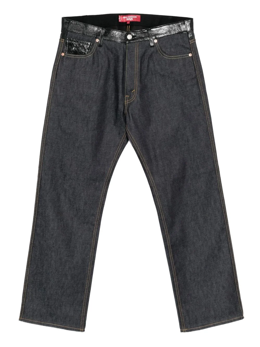 leather-patch jeans Highlights - Navy blue - Front button and zip fastening - Classic five pockets Imported Composition Outer: Cotton 100% Calf Leather 100% Washing instructions Machine Wash