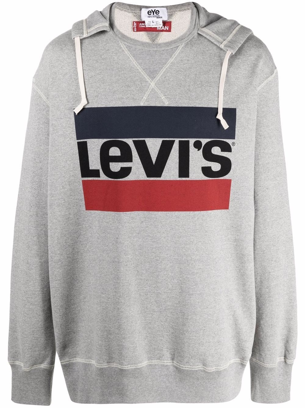 logo drawstring hoodie grey/navy/red cotton logo print to the front drawstring hood long sleeves Imported Composition Cotton 100% SIZE & FIT Model measurements Height 6 ft 1 in(1.85 m) Bust/Chest 37.79 in(96 cm) Hips 37.4 in(95 cm) Waist 30.7 in(78 cm) FittingInformation This piece fits true to size. We recommend you get your regular size Cut for a loose fit Made with a mid-weight fabric Washing instructions Hand Wash