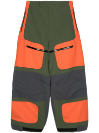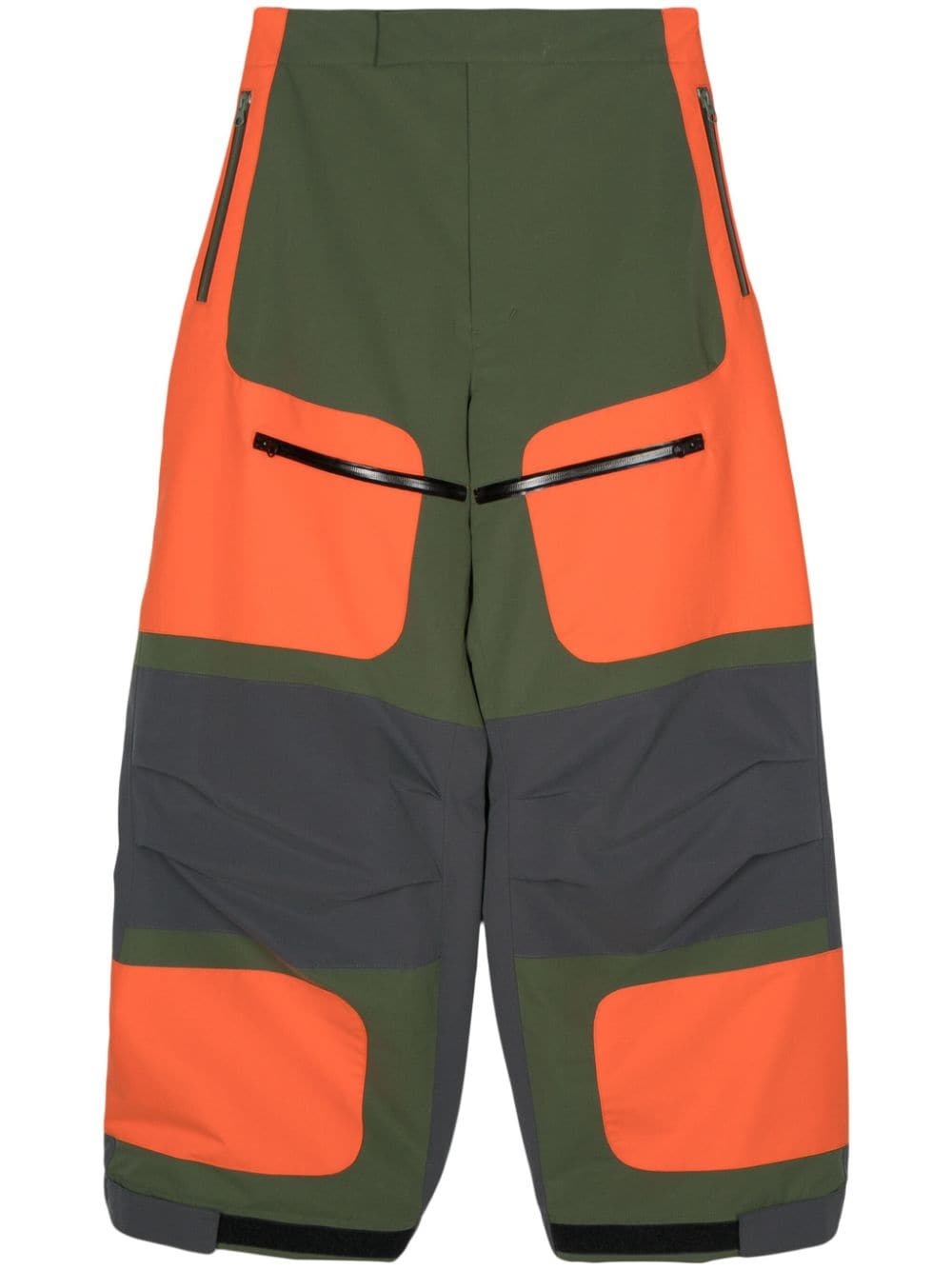 panelled straight-leg trousers Highlights - Green/orange/grey - Panelled design - Straight leg - Multiple zip-fastening pockets - Rear elasticated waistband - Touch-strap cuffs - Concealed front button, hook and zip fastening Imported Composition Outer: Nylon 100% Lining: Polyester 100%