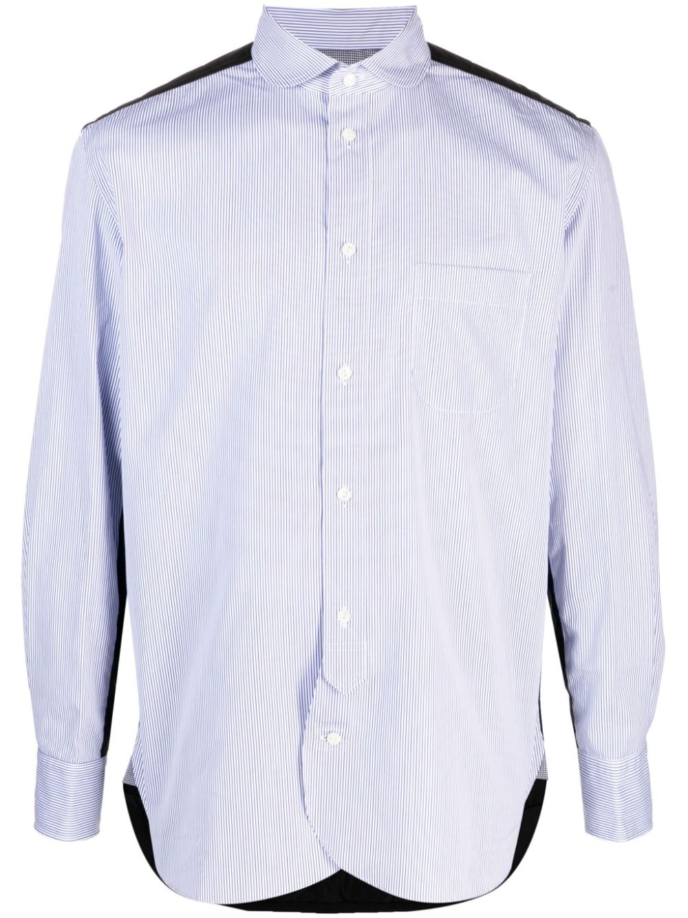 panelled striped cotton shirt Highlights - Chalk white/sky blue/black - Cotton - Panelled and padded design - Vertical stripe pattern - Rounded collar - Front button fastening - Buttoned-cuff sleeves - Asymmetric hem Imported Composition Outer: Nylon 100%, Cotton 100% Lining: Polyester 100% SIZE & FIT Model measurements Height 6 ft 2 in(1.89 m) Bust/Chest 37.79 in(96 cm) Hips 37 in(94 cm) Waist 29.92 in(76 cm) FittingInformation Designed to be unstructured, offering a loose fit throughout Made from a midweight non-stretch fabric This piece fits true to size – take your usual size Washing instructions Hand Wash