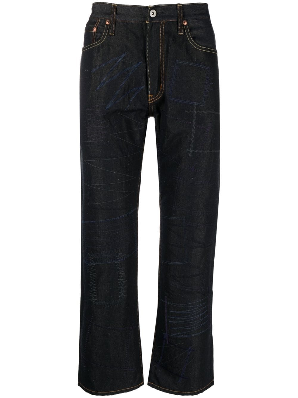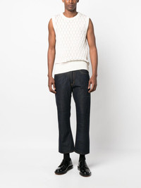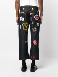 patch-detail cropped flared jeans Highlights - Midnight blue - Cotton - Embroidered design to the front - Multiple patches to the rear - Belt loops - Front button fastening - Low-rise - Slight flare - Cropped leg - Classic five pockets Imported Composition Outer: Polyester 44%, Linen/Flax 32%, Rayon 24% Lining: Cotton 100% SIZE & FIT Model measurements Height 6 ft 2 in(1.88 m) Bust/Chest 35.03 in(89 cm) Hips 35.82 in(91 cm) Waist 27.95 in(71 cm) FittingInformation Designed for a straight-leg, allowing for an unrestricted and comfortable fit over the leg Cropped in length Made from a midweight non-stretch fabric This piece fits true to size – take your usual size Washing instructions Hand Wash