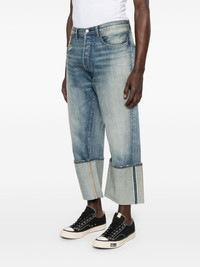 patch-detail jeans Highlights - Indigo blue - Button fly fastening - Classic five pockets - Belt loops - Whiskering effect Imported Composition Lining: Cotton 97%, Polyurethane 3% Outer: Calf Leather 100%, Cotton 100% SIZE & FIT Model measurements Height 6 ft 0 in(1.84 m) Bust/Chest 37.79 in(96 cm) Hips 37 in(94 cm) Waist 31.49 in(80 cm) FittingInformation Designed with a straight leg, these jeans allow for an unrestricted and comfortable fit over the leg Sturdy and hard-wearing, this denim piece offers no stretch