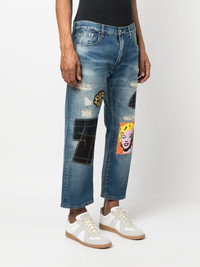 Patchwork cropped jeans blue cotton denim patchwork design ripped detailing button fly fastening belt loops straight leg cropped Imported Composition Cotton 100% SIZE & FIT Model measurements Height 6 ft 2 in(1.87 m) Bust/Chest 37 in(94 cm) Hips 33.85 in(86 cm) Waist 27.95 in(71 cm) FittingInformation This piece fits true to size. We recommend you get your regular size Cut for a slim fit Made with a mid-weight non-stretch fabric Washing instructions Hand Wash