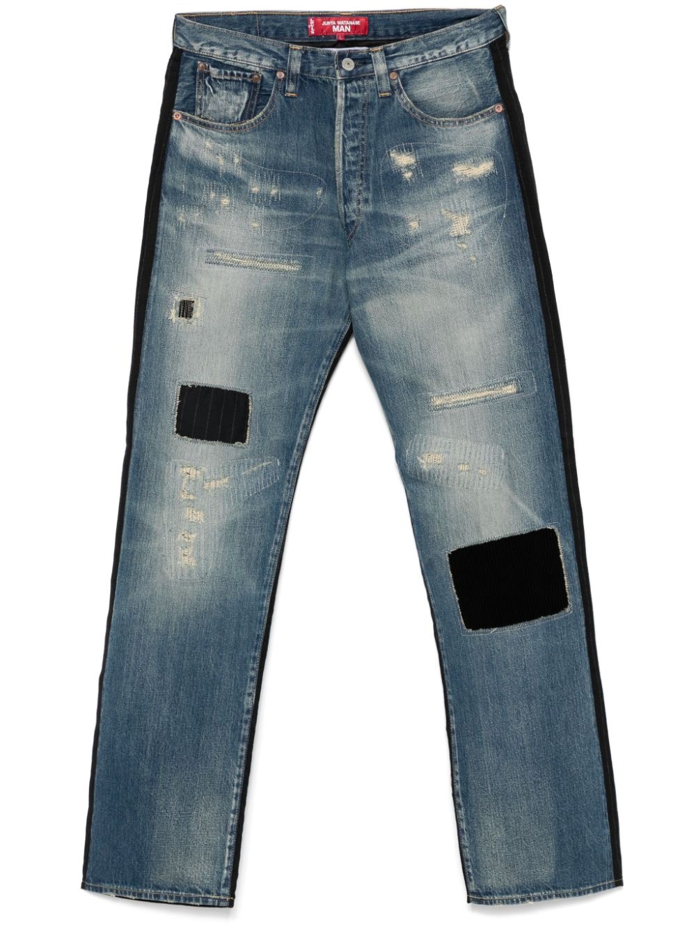 patchwork jeans Highlights - Indigo blue - Cotton/wool - Denim - Patchwork design - Distressed effect - Button fly fastening - Belt loops - Classic five pockets - Pinstripe pattern to the rear - Logo patch to the rear - Straight leg Imported Composition Calf Leather 100%, Wool 100%, Cotton 100% SIZE & FIT Model measurements Height 6 ft 2 in(1.87 m) Bust/Chest 36.22 in(92 cm) Hips 35.43 in(90 cm) Waist 29.13 in(74 cm) FittingInformation Designed for a straight-leg, allowing for an unrestricted and comfortable fit over the leg Made from a midweight non-stretch fabric