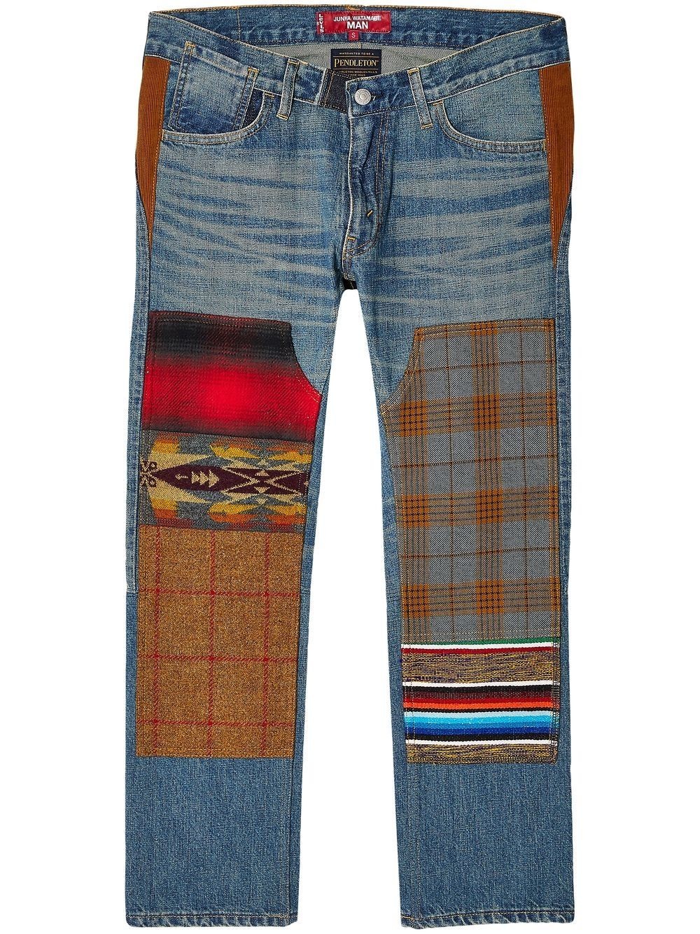 patchwork mid-rise jeans indigo blue/multicolour denim patchwork design bleached effect mid-rise classic five pockets straight leg Imported Composition Cotton 100% Washing instructions Read Manufacturer Guidelines