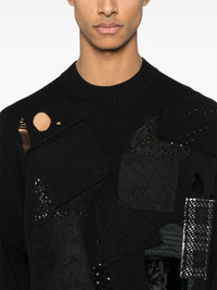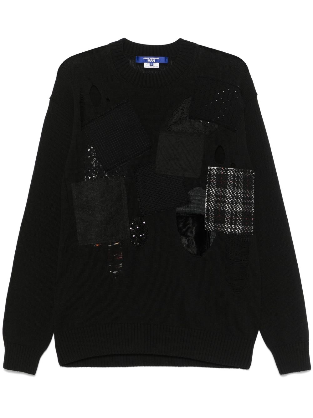 patchwork sweater Highlights - Black - Crew neck - Long sleeves - Ribbed cuffs and hem Imported Composition Cotton 100% SIZE & FIT Model measurements Height 6 ft 2 in(1.87 m) Bust/Chest 38.18 in(97 cm) Hips 36.61 in(93 cm) Waist 29.13 in(74 cm) FittingInformation Designed to be unstructured, offering a loose fit throughout The ribbed hem offers a close, comfortable fit Made with a midweight knit, this piece offers some stretch