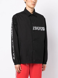 printed sleeves shirt jacket black/white classic collar press-stud fastening elasticated cuffs two front jetted pockets straight hem graphic-print sleeves graphic print at the chest Imported Composition Lining: Polyester 100% Outer: Nylon 100% SIZE & FIT Model measurements Height 6 ft 2 in(1.87 m) Bust/Chest 34.25 in(87 cm) Hips 36.22 in(92 cm) Waist 29.52 in(75 cm) FittingInformation This piece fits true to size. We recommend you get your regular size Cut for a loose fit Made with a mid-weight non-stretch fabric Washing instructions Hand Wash