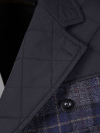 quilted check coat Highlights - Navy grey black - Check pattern - Quilted design - Button fastening - Flap pockets - Notched lapels Imported Composition Fabric 100% Washing instructions Read Manufacturer Guidelines