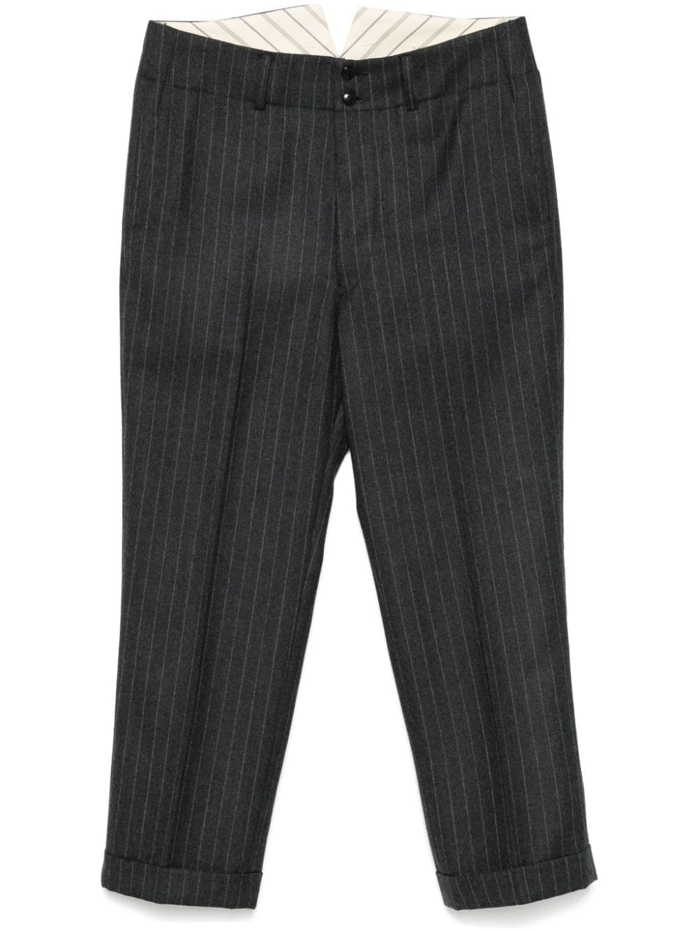 striped trousers Highlights - Dark grey/white - Wool - Horizontal stripe pattern - Button fly fastening - Belt loops - Pressed crease - Two side inset pockets - Rear flap pocket - Rear jetted pocket - Adjustable strap to the rear - Partial lining - Turn-up hem - Tapered leg Imported Composition Wool 100%, Cupro 100%