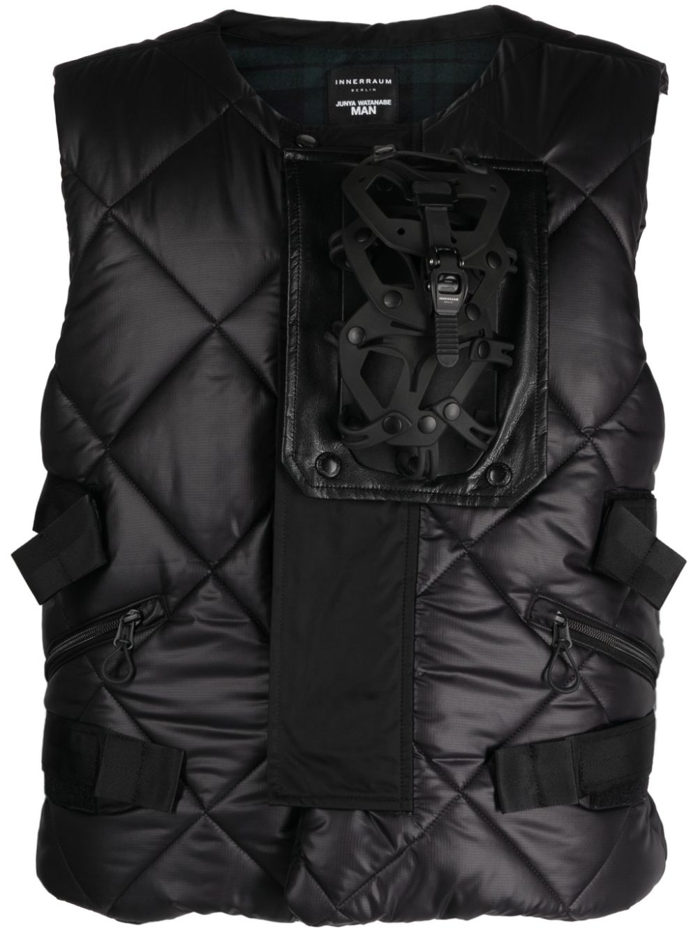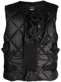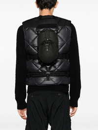 x Innerraum quilted backpack utility gilet Highlights - Black - Padded design - Diamond quilting - Strap detailing - Round neck - Front press-stud fastening - Sleeveless - Two side zip-fastening pockets - Removable pouch Imported Composition Outer: Polyester 100%, Nylon 100%, Polyurethane 100%, Cotton 100% Lining: Polyester 100%, Wool 90%, Nylon 9%, Polyurethane 1% SIZE & FIT Model measurements Height 6 ft 2 in(1.87 m) Bust/Chest 36.41 in(92.5 cm) Hips 35.43 in(90 cm) Waist 29.52 in(75 cm) FittingInformation Designed for a slim fit, offering a comfortable fit that sits just away from the body The adjustable tabs allow for fitted preferences Made from a quilted non-stretch fabric, giving it no natural elasticity This piece fits true to size – take your usual size Washing instructions Dry Clean Only