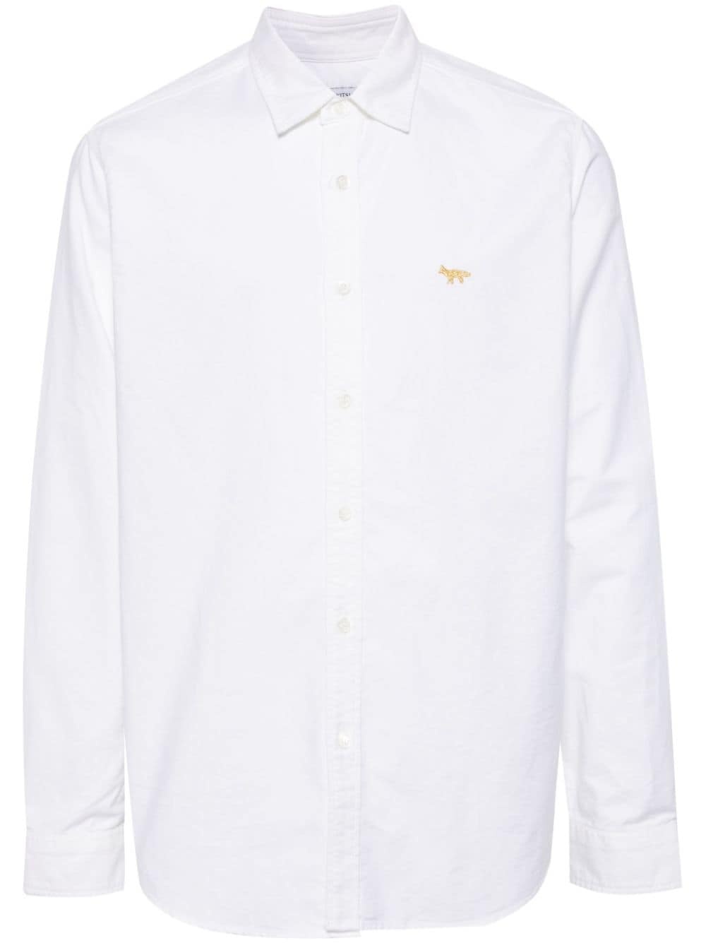 x Maison Kitsune logo-embroidered shirt Highlights - Optical white - Cotton - Embroidered logo at the chest - Classic collar - Front button fastening - Long sleeves - Buttoned cuffs - Curved hem Imported Composition Cotton 100%