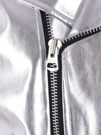 metallic biker jacket Highlights - Silver-tone - Metallic - Off-centre front zip fastening - Long sleeves Imported Composition Lining: Polyester 100% Outer: Artificial Leather 100%