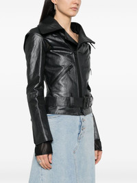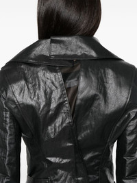 metallic biker jacquet Highlights - Black - Coated finish - Metallic effect - Spread collar - Zip-fastening chest pocket - Long sleeves - Cuff zips - Layered details to the cuff - Two side zip-fastening pockets - Front patch pocket - Belt loops - Detachable waist belt - Central rear vent with mesh panelling - Mesh lining - Off-centre front button fastening Imported Composition Lining: Polyester 100% Outer: Polyester 64%, Cotton 36% SIZE & FIT Model measurements Height 5 ft 11 in(1.8 m) Bust/Chest 33.07 in(84 cm) Hips 37.4 in(95 cm) Waist 25.19 in(64 cm) FittingInformation Designed for a slim fit that sits just away from the body offering a close yet comfortable fit The belt offers adjustability for fitted preferences Made from a midweight non-stretch fabric This piece fits true to size – take your usual size