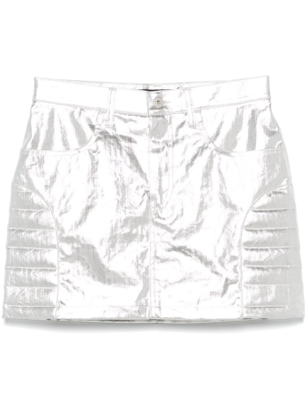 metallic-finish mini skirt Highlights - Silver-tone - Concealed fly and button fastening - Belt loops - Two rear zip-fastening pockets - Full lining Imported Composition Lining: Polyester 100% Outer: Cotton 100%