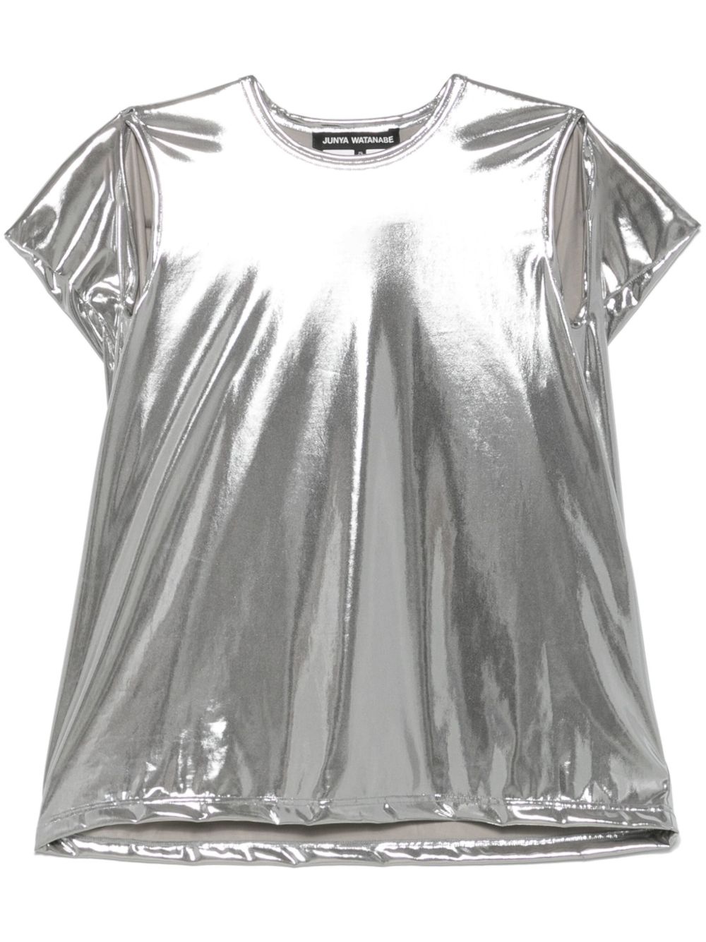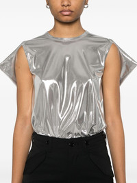 metallic-finish T-shirt Highlights - Silver-tone - Crew neck - Armholes - Straight hem Imported Composition Polyester 94%, Polyurethane 6% SIZE & FIT Model measurements Height 5 ft 10 in(1.78 m) Bust/Chest 32.67 in(83 cm) Hips 35.43 in(90 cm) Waist 23.22 in(59 cm) FittingInformation Designed to be unstructured, offering a loose fit throughout Made from a midweight non-stretch fabric, this piece offers minimal elasticity when worn