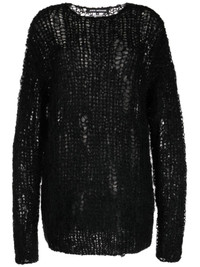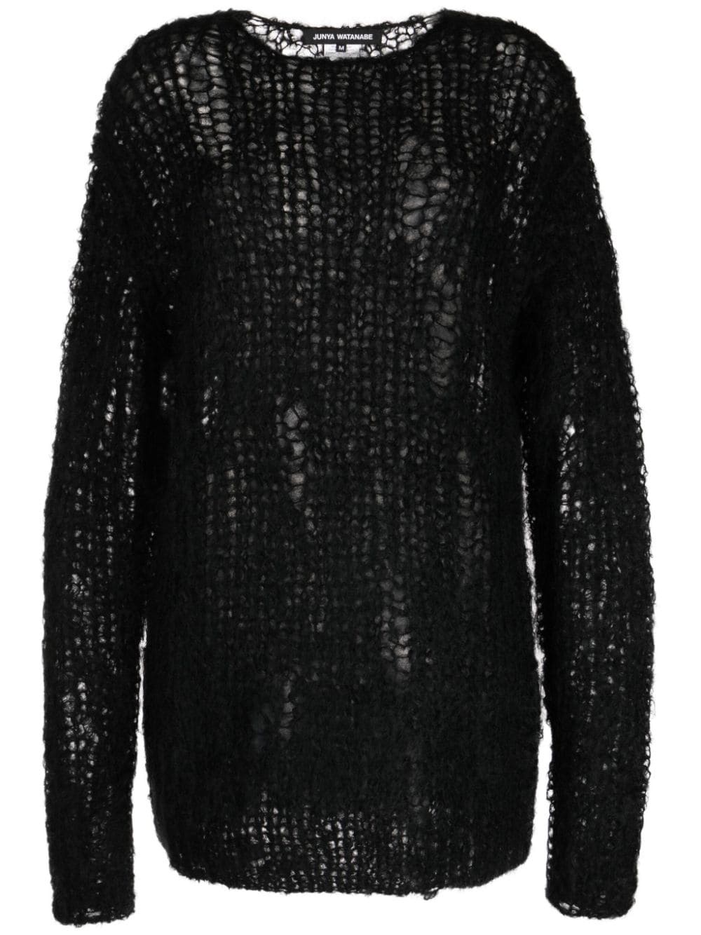 open-knit mohair-blend jumper Highlights - Black - Mohair-wool blend - Open knit - Round neck - Long sleeves - Straight hem Imported Composition Body: Mohair 73%, Wool 27% Washing instructions Dry Clean Only