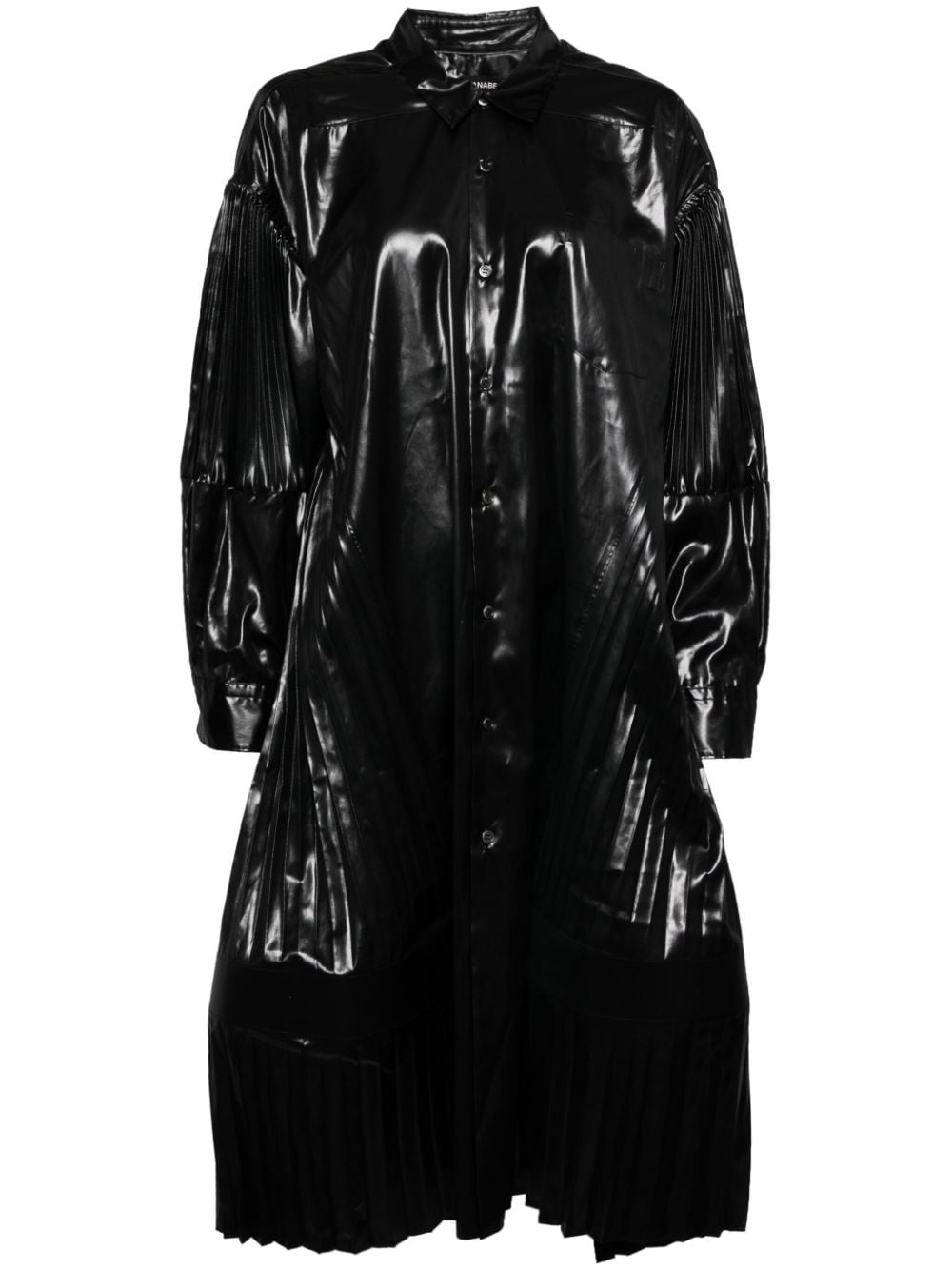 pleated dress Highlights - Black - Front button fastening - Pointed flat collar - Pleat detailing - Long puff sleeves - Buttoned cuffs - Chest patch pocket Imported Composition Polyester 100%