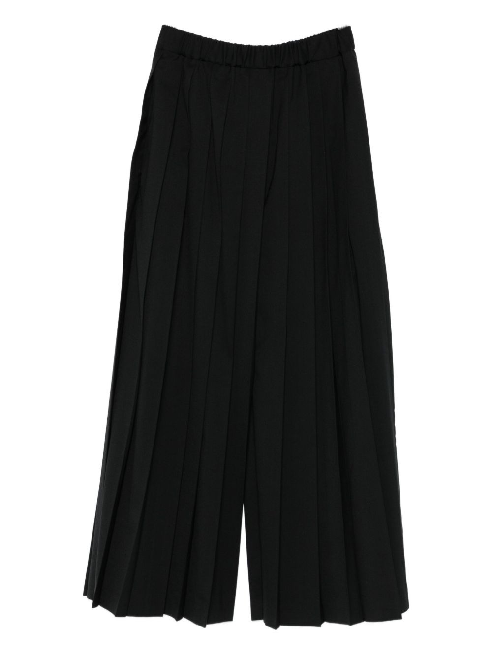 pleated wide-leg trousers Highlights - Black - Pleat detailing - Elasticated waistband - Wool Imported Composition Wool 100% SIZE & FIT Model measurements Height 5 ft 10 in(1.77 m) Bust/Chest 32.28 in(82 cm) Hips 35.03 in(89 cm) Waist 25.19 in(64 cm) Washing instructions Read Manufacturer Guidelines