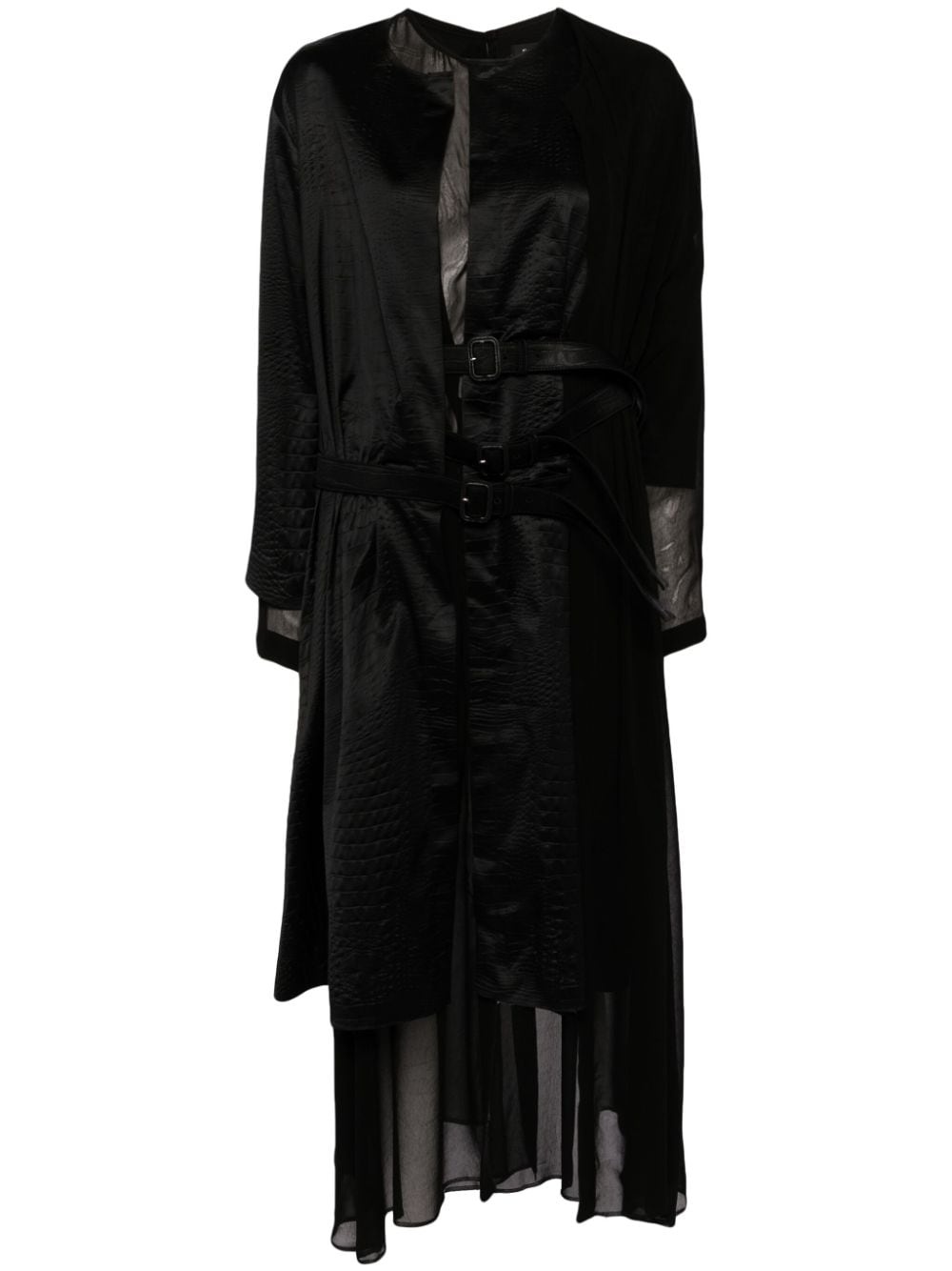 wrap around belted dress Highlights - Black - Embossed crocodile effect - Contrasting fabrics - Front snap button fastening - Adjustable belt fastenings at waist - Asymmetric design Imported Composition Base: Cupro 100% Trims: Artificial Leather 100%