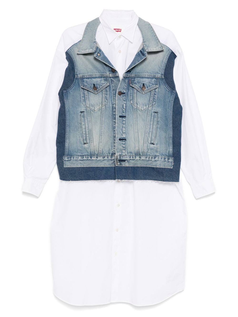 x Levi's denim dress Highlights - Blue/white - Front button fastening - Two button-fastening chest pockets - Two side welt pockets - Buttoned cuffs Imported Composition Cotton 100% SIZE & FIT Model measurements Height 5 ft 9 in(1.76 m) Bust/Chest 30.7 in(78 cm) Hips 33.46 in(85 cm) Waist 24.4 in(62 cm) FittingInformation Designed to be unstructured, offering a loose fit throughout Made from a midweight non-stretch fabric Washing instructions Machine Wash