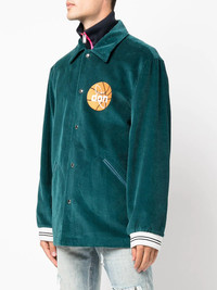 basketball corduroy jacket green cotton corduroy embroidered motif stripe trim pointed flat collar snap fastening two side slash pockets long sleeves logo-print lining Made in Italy Composition Cotton 100% SIZE & FIT Model measurements Height 6 ft 2 in(1.88 m) Bust/Chest 38.18 in(97 cm) Hips 37 in(94 cm) Waist 29.92 in(76 cm) Washing instructions Dry Clean Only