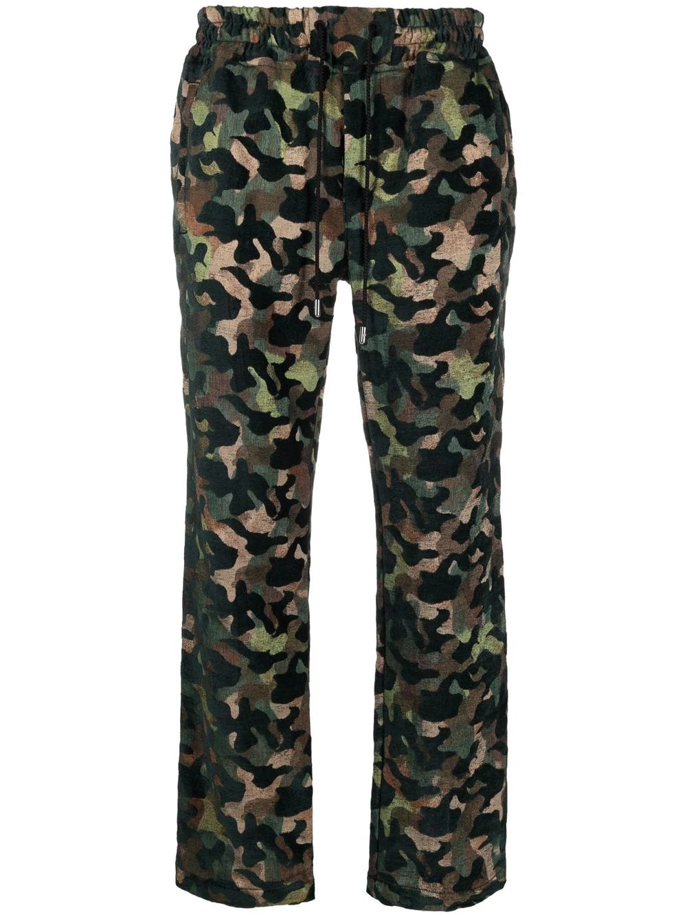 camouflage-print straight leg trousers green cotton-blend camouflage print straight leg cropped elasticated waistband Made in Italy Composition Outer: Viscose 41%, Cotton 23%, Polyester 20%, Acetate 16% Lining: Cotton 51%, Viscose 49% SIZE & FIT Model measurements Height 5 ft 10 in(1.79 m) Bust/Chest 32.28 in(82 cm) Hips 36.61 in(93 cm) Waist 25.19 in(64 cm) FittingInformation This piece fits true to size. We recommend you get your regular size Designed for a slim fit at the waist and loose over the leg Made with a mid-weight non-stretch fabric Washing instructions Machine Wash