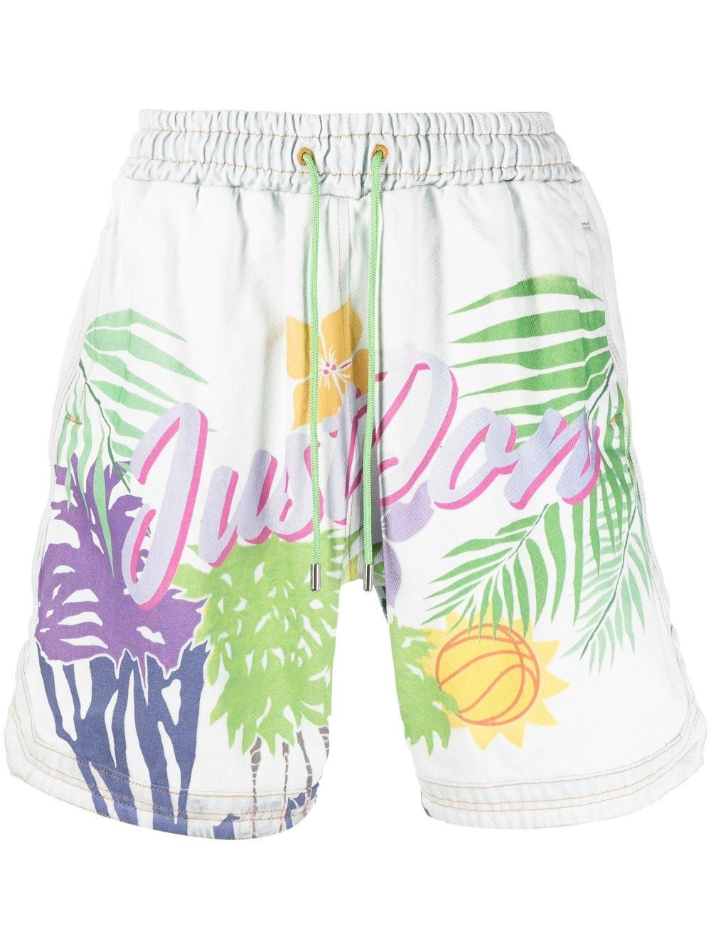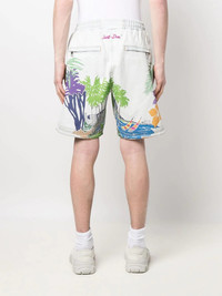graphic-logo print shorts multicolour cotton all-over graphic print logo print to the front elasticated drawstring waistband slip pockets to the sides above-knee length straight hem Made in Italy Composition Outer: Cotton 100% Lining: Cotton 51%, Viscose 49% SIZE & FIT Model measurements Height 6 ft 1 in(1.86 m) Bust/Chest 38.58 in(98 cm) Hips 38.18 in(97 cm) Waist 27.95 in(71 cm) FittingInformation This piece fits true to size. We recommend you get your regular size Designed for a slim fit at the waist and loose over the leg Made with a mid-weight non-stretch fabric Washing instructions Hand Wash