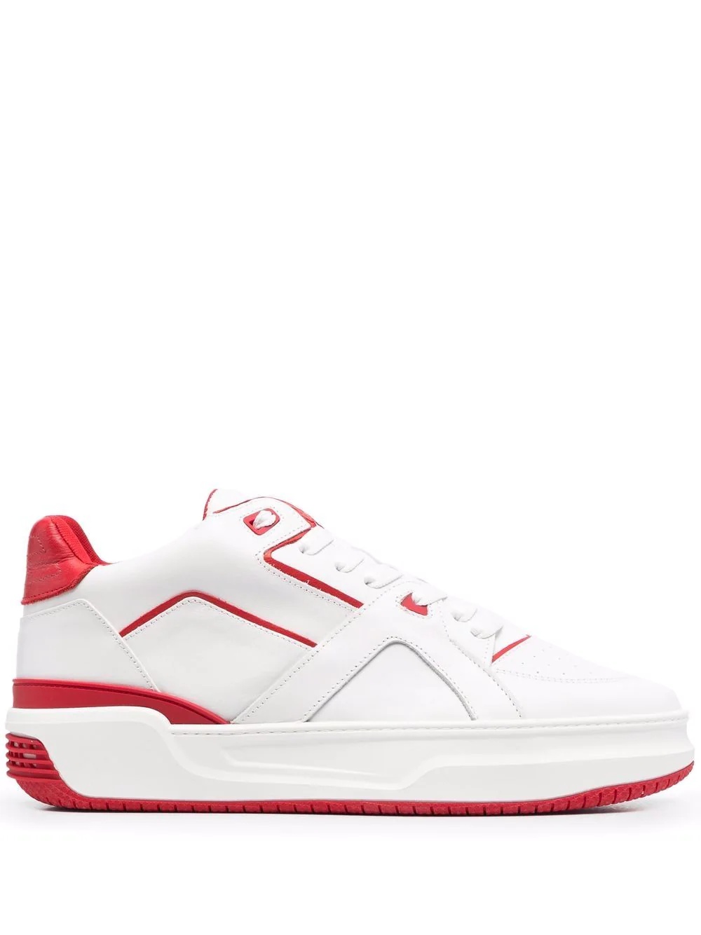 leather lace-up sneakers white/red leather two-tone design contrast stitching round toe front lace-up fastening padded ankle flat rubber sole Made in Italy Composition Outer: Polyurethane 100%, Calf Leather 100% Lining: Fabric 100%, Calf Leather 100% Sole: Rubber 100% SIZE & FIT Measurement Sole height 1.37 in(3.5 cm)