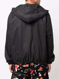 logo-print hooded windbreaker black lightweight construction classic hood short front zip fastening front flap pocket long sleeves elasticated cuffs elasticated hem straight hem Made in Italy Composition Polyester 100%, Polyamide 95%, Elastane 5% SIZE & FIT Model measurements Height 6 ft 1 in(1.85 m) Bust/Chest 37.79 in(96 cm) Hips 37.4 in(95 cm) Waist 30.7 in(78 cm) FittingInformation This piece fits true to size. We recommend you get your regular size Cut for a loose fit Made with a mid-weight fabric Washing instructions Hand Wash