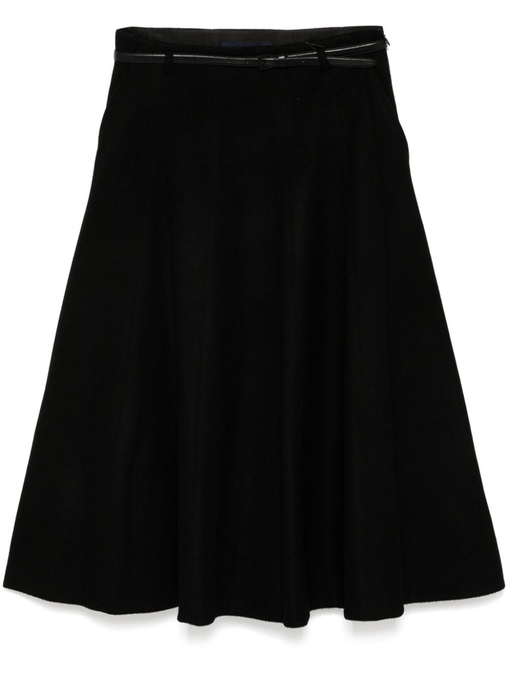 A-line skirt Highlights - Black - Wool-cashmere blend - Side zip fastening - Detachable and adjustable waist belt - Two side inset pockets - Flared design - Partial lining Imported Composition Outer: Wool 91%, Cashmere 9% Lining: Polyester 50%, Rayon 50% SIZE & FIT Measurement HIPS 44.09 in(112 cm) LENGTH 31.88 in(81 cm) WAIST 28.34 in(72 cm)