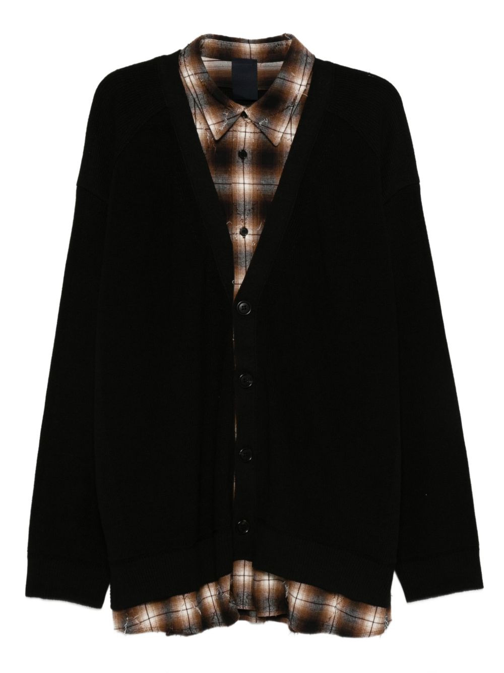 button-front plaid-layered cardigan
