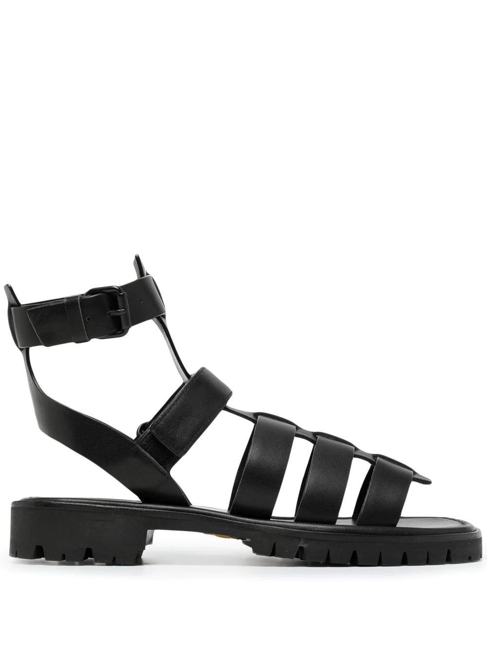 caged leather sandals black calf leather caged design buckle-fastening ankle strap open toe flat rubber sole Imported Composition Leather 100% SIZE & FIT Measurement HEEL 1.18 in(3 cm) HEIGHT 4.13 in(10.5 cm) PLATFORM 0.74 in(1.9 cm)