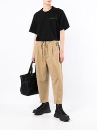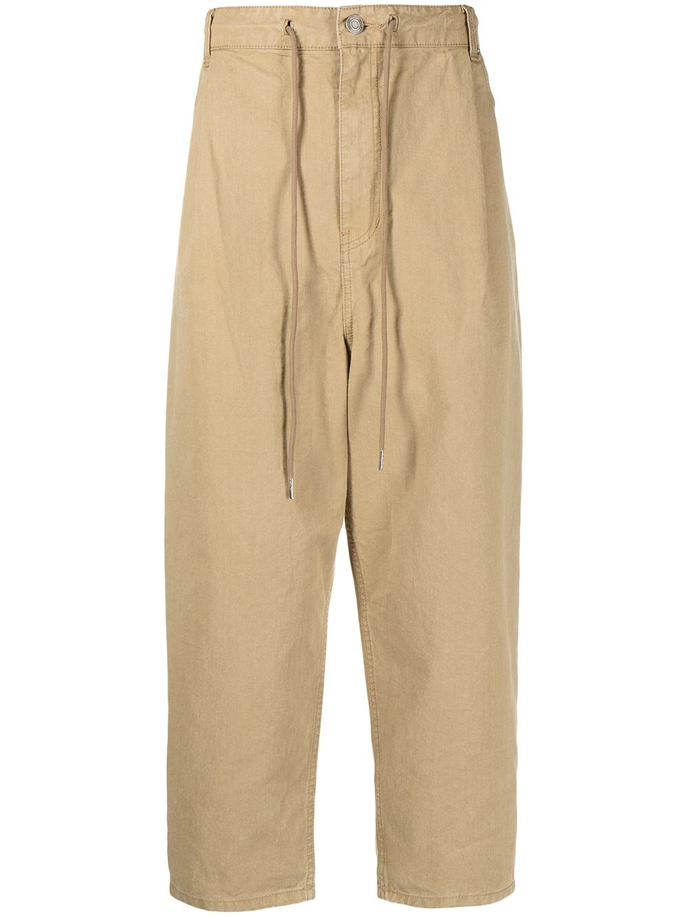 cropped tapered-leg trousers pale beige cotton mid-rise drawstring fastening waist front button and zip fastening classic five pockets Imported Composition Cotton 100% SIZE & FIT Model measurements Height 6 ft 2 in(1.87 m) Bust/Chest 34.25 in(87 cm) Hips 36.22 in(92 cm) Waist 29.52 in(75 cm) FittingInformation This piece fits true to size. We recommend you get your regular size Designed for a slim fit at the waist and loose over the leg Made with a mid-weight fabric Washing instructions Dry Clean Only