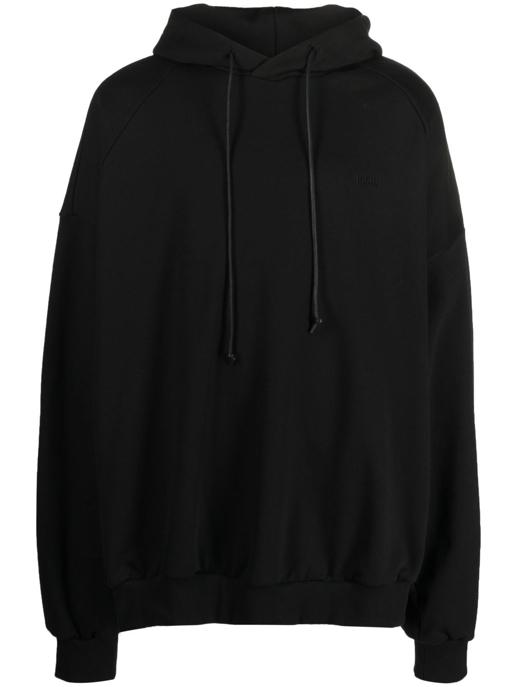 drawstring cotton hoodie Highlights - Jet black - Cotton - Knitted construction - Embroidered logo at the chest - Logo print to the rear - Graphic print to the rear - Drawstring hood - Drop shoulder - Extra-long sleeves - Ribbed cuffs and hem - Elasticated cuffs and hem Imported Composition Cotton 100% SIZE & FIT Model measurements Height 6 ft 2 in(1.87 m) Bust/Chest 38.18 in(97 cm) Hips 36.61 in(93 cm) Waist 29.13 in(74 cm) Measurement CHEST 58.26 in(148 cm) SLEEVE LENGTH 22.83 in(58 cm) Shoulder Width 29.92 in(76 cm) LENGTH 28.34 in(72 cm) FittingInformation Designed for an oversized fit, offering additional room throughout Made from a midweight fabric This piece fits true to size – take your usual size