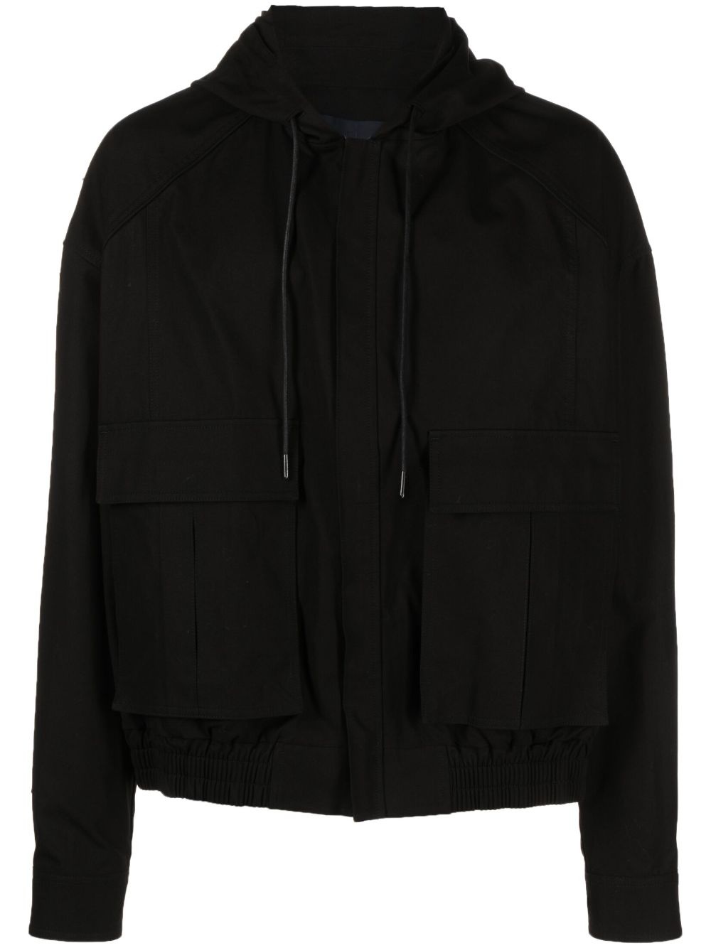 drawstring hooded jacket Highlights - Black - Cotton - Drawstring hood - Two front flap pockets - Long sleeves - Elasticated hem - Straight hem Imported Composition Cotton 100% SIZE & FIT Model measurements Height 6 ft 2 in(1.87 m) Bust/Chest 38.18 in(97 cm) Hips 36.61 in(93 cm) Waist 29.13 in(74 cm) FittingInformation Designed to be unstructured, offering a loose fit throughout The elasticated hem allows for movement and a comfortable fit Made from a midweight non-stretch fabric This piece fits true to size – take your usual size Washing instructions Dry Clean Only