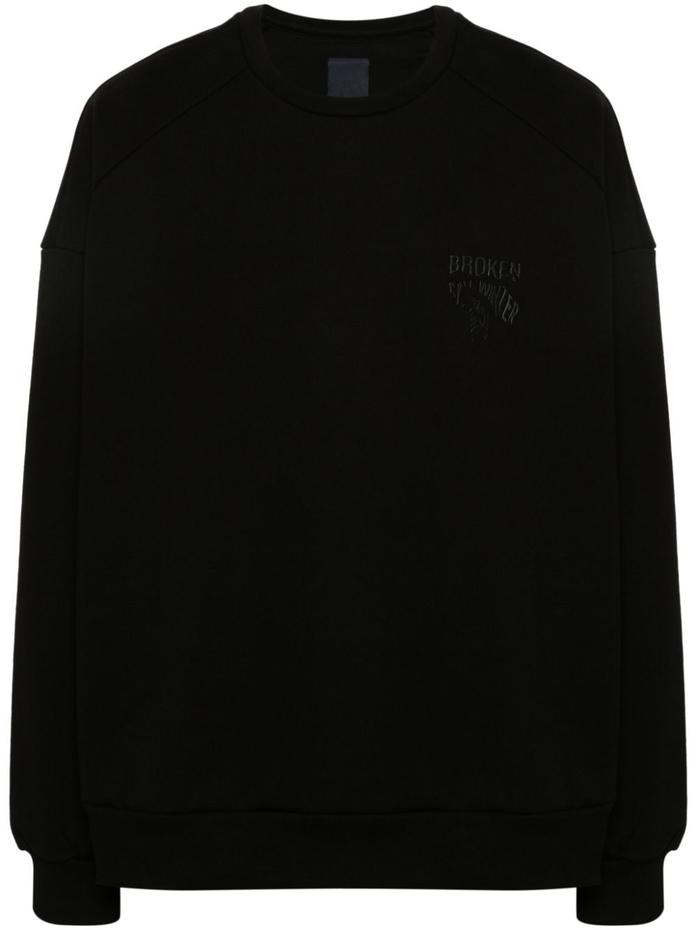 embroidered-logo sweatshirt Highlights - Black - Cotton blend - Jersey texture - Rubberised slogan to the chest - Embroidered logo and slogan to the rear - Crew neck - Long sleeves - Ribbed cuffs and hem - Straight hem Imported Composition Cotton 80%, Polyester 20% SIZE & FIT Model measurements Height 6 ft 2 in(1.88 m) Bust/Chest 36.61 in(93 cm) Hips 35.82 in(91 cm) Waist 27.95 in(71 cm) FittingInformation Designed for an oversized fit, offering additional room throughout Made from a midweight non-stretch fabric, this piece offers minimal elasticity when worn This piece fits true to size – take your usual size Washing instructions Hand Wash