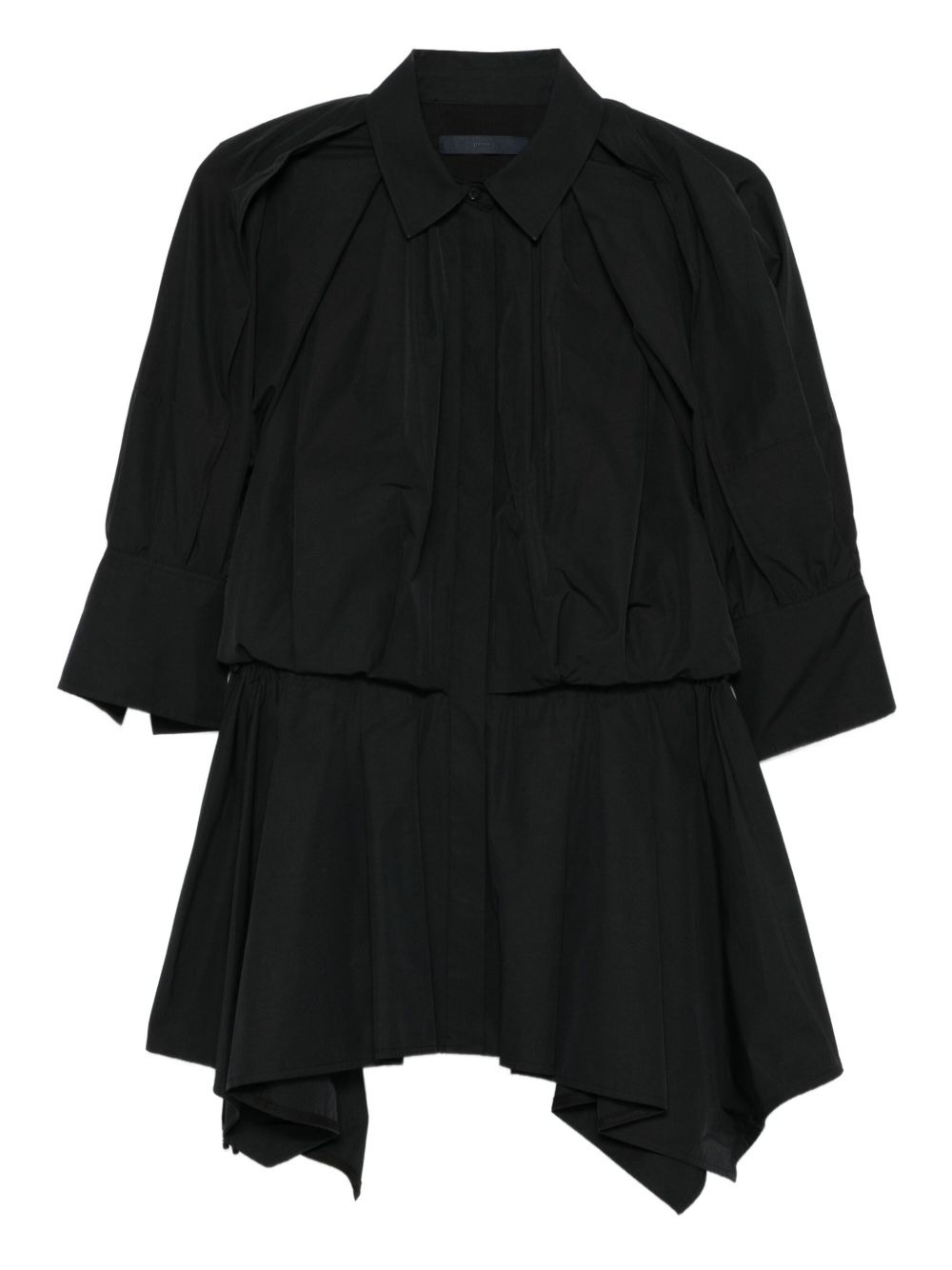 gathered layered blouse Highlights - Black - Gathered detailing - Three-quarter sleeves - Buttoned cuffs - Pointed collar - Asymmetric hem Imported Composition Fabric 100% Washing instructions Read Manufacturer Guidelines