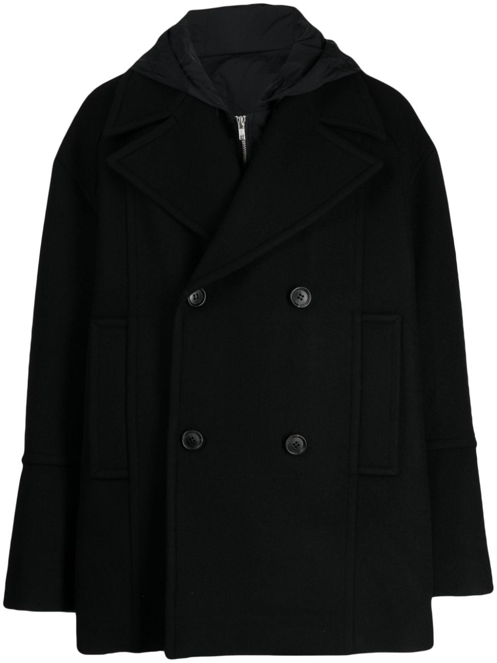 hooded double-breasted peacoat