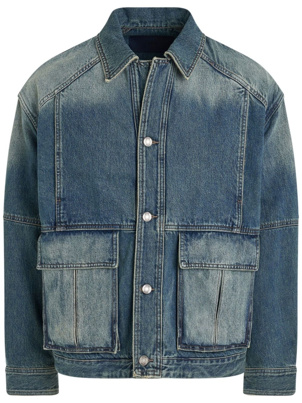 panelled denim jacket Highlights - Blue - Cotton - Washed denim - Panelled design - Front button fastening - Spread collar - Drop shoulder - Long sleeves - Buttoned cuffs - Two front flap pockets - Straight hem Imported Composition Cotton 100%